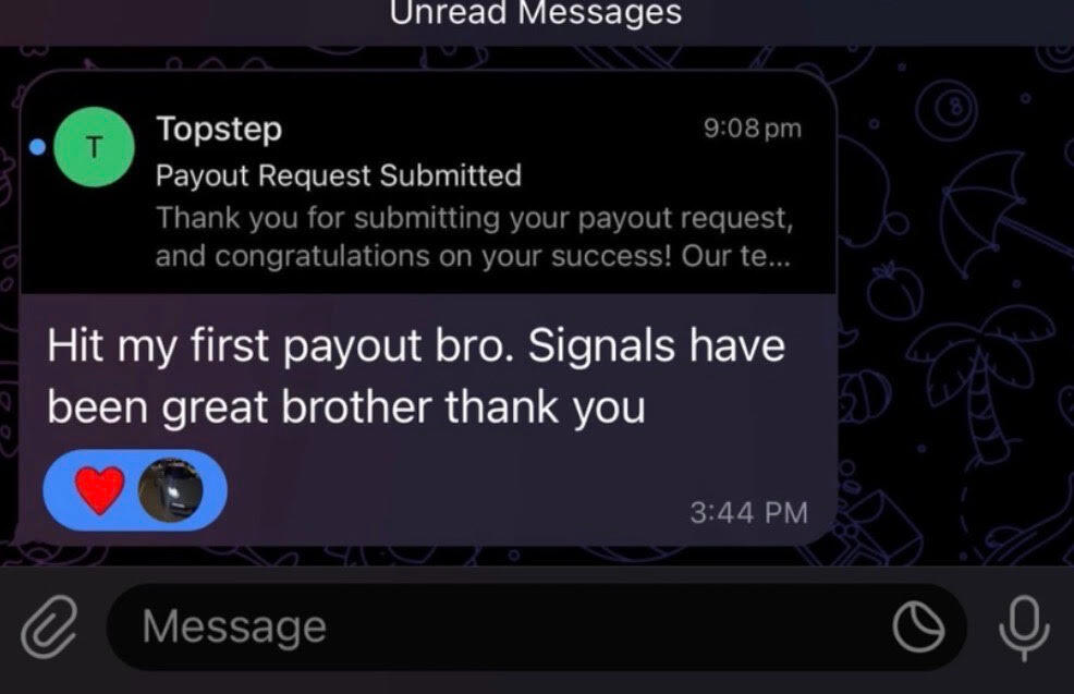Our VIP program grants access to a proven monthly track record, 3–5 high-quality weekly signals (focused on XAUUSD & US30), a private community chat, and monthly Discord calls to review progress.